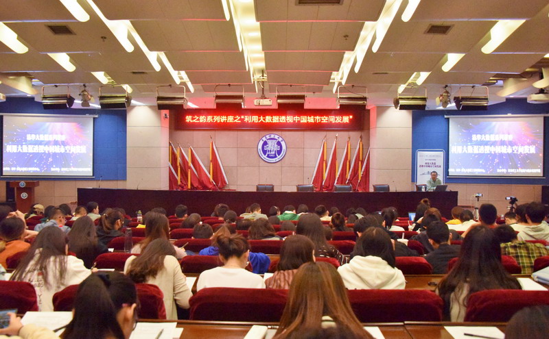 10月9日晚,在清华—青岛大数据工程研究中心支持下,清华大学建筑学院博士生导师、北京城市实验室(Beijing City Lab、BCL)创始人、中国城市科学研究会城市大数据专业委员会副主任兼秘书长龙瀛来校做《利用大数据透视中国城市空间发展》学术报告,建筑与城乡规划学院郝赤彪教授、高江副书记等近300名师生以及来自青岛城市规划领域的代表到场聆听,学术报告由副院长朱一荣主持。